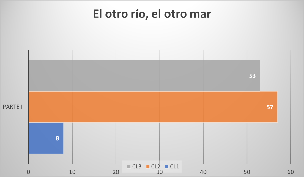 En el análisis hecho, se ha logrado identificar la relación de las palabras o de las cosas con el agua. Hay tres niveles de relación, que podrían llamarse unos campos léxicos contingenciales. En un primer nivel se encontró al agua en sus diferentes estados, casi siempre líquida o en gas (niebla), y en un par de ocasiones el hielo (y una de ellas es la nieve). En un segundo campo léxico, aparecen aquellas cosas que sin el agua no existirían, como los ríos, los mares, los elementos marítimos, verbos acuáticos, el barro, entre otros. Y en el último campo están aquellas palabras que, si bien no son esencialmente agua, ni están hechas para el agua, sí tienen una íntima relación, porque se alimentan del agua, como la vegetación, las aves; o bien son verbos que, si no son exclusivos del agua, tienen dentro de su significado una relación con lo líquido.