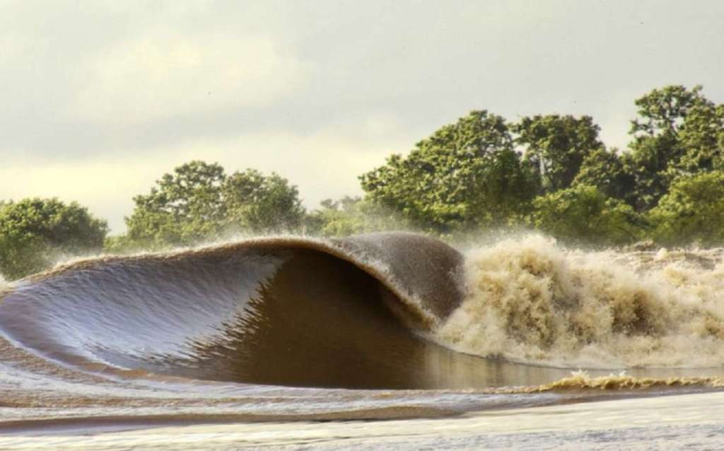 La luna, la Tierra y el sol están alineados y las aguas saladas se imponen sobre las aguas dulces, que se frenan justo debajo. El monstruo asesino va penetrando el caudal de los ríos, que ya no logran contenerlo.