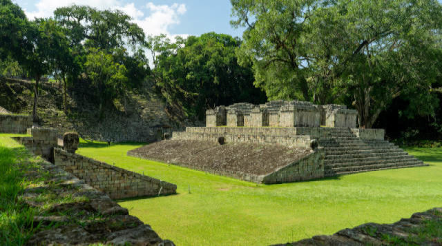 El poemario de Alvarado se compone de tres partes: presagios, ruina en ruinas y nahuales a la deriva. En la primera parte, el poeta propone una especie de lienzo, uno que se mueve, y va logrando la cohesión a base de mostrarnos las piedras, una iguana, una ceiba, un jaguar, el campo de pelota desde diferentes perspectivas y todos los escenarios que se puedan construir a partir del léxico delicadamente repartido entre los poemas.