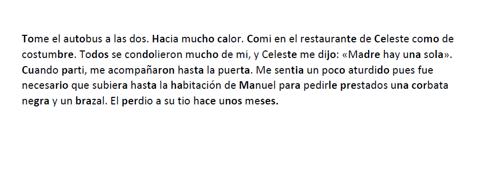 - Y marcamos (o bien con negrita, o bien subrayado) una de las sílabas átonas (o sea una de las que o la que no es acentuada).