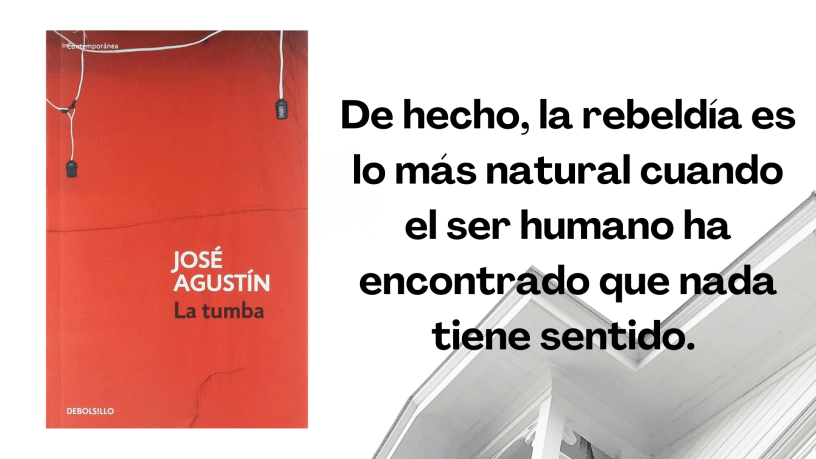 José Agustín cuenta en «La tumba» las vivencias durante algunos meses del joven Gabriel, estudiante de preparatoria. Por las acciones de este personaje se descubre que pertenece a una familia acomodada, es rebelde (quizá una rebeldía propia de la edad) y, además, muestra mucha inteligencia, quizá esto le jugará luego en contra, porque posiblemente no hay nada peor que verlo TODO.