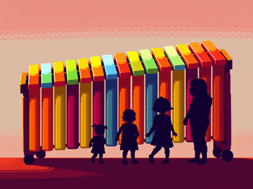 Esta expresión tiene un desplazamiento semántico muy probablemente de origen gráfico, ya que el aspecto de las láminas y los tubos de la marimba (instrumento musical) es en orden creciente o decreciente, según desde donde usted lo vea, como se vería una fila o una formación de niños del mayor al menos, supongamos.
